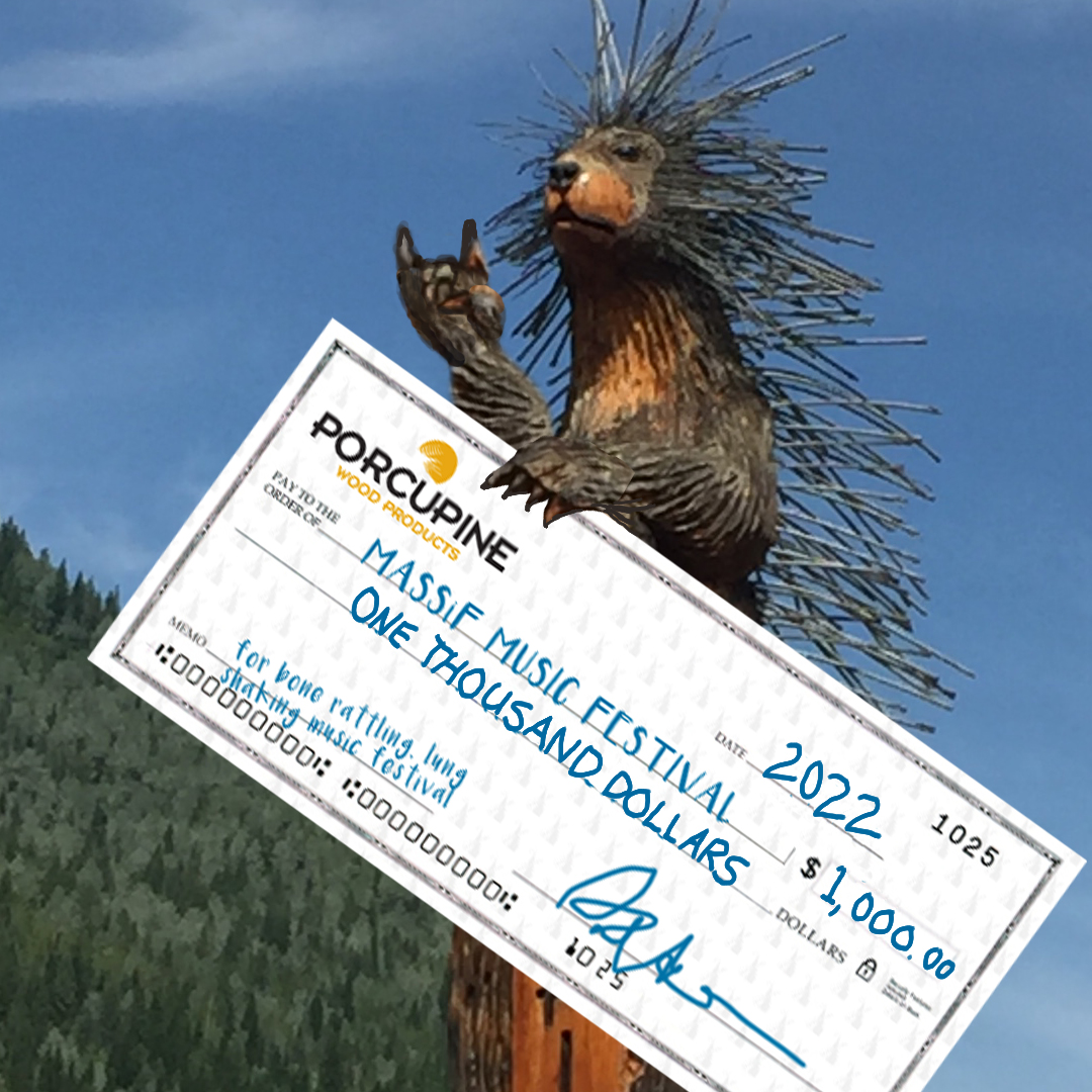 Porcupine Wood Products has had Massif’s back from the start and is once again boosting us up as we return to the live stage. Huge thanks as always to this family-owned business in Salmo!